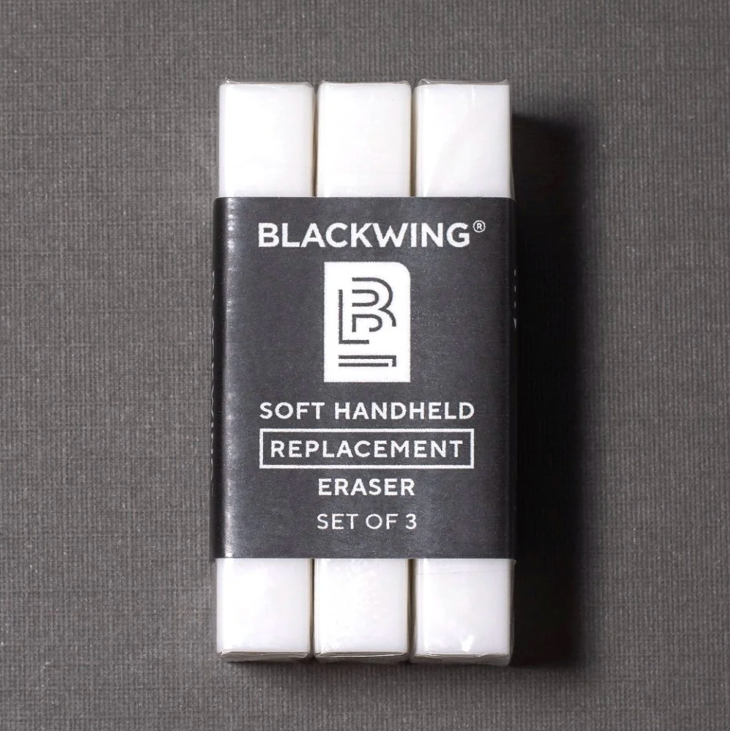 Each eraser is made of a specialized soft material that erases the dark lines of our graphite cleanly and easily. Use them with our durable aluminum holder that lets you get a solid grip while erasing. The jumbo-sized Blackwing clip also lets you extend the eraser as you use it.
