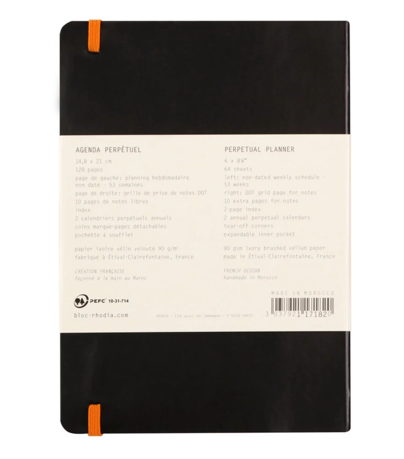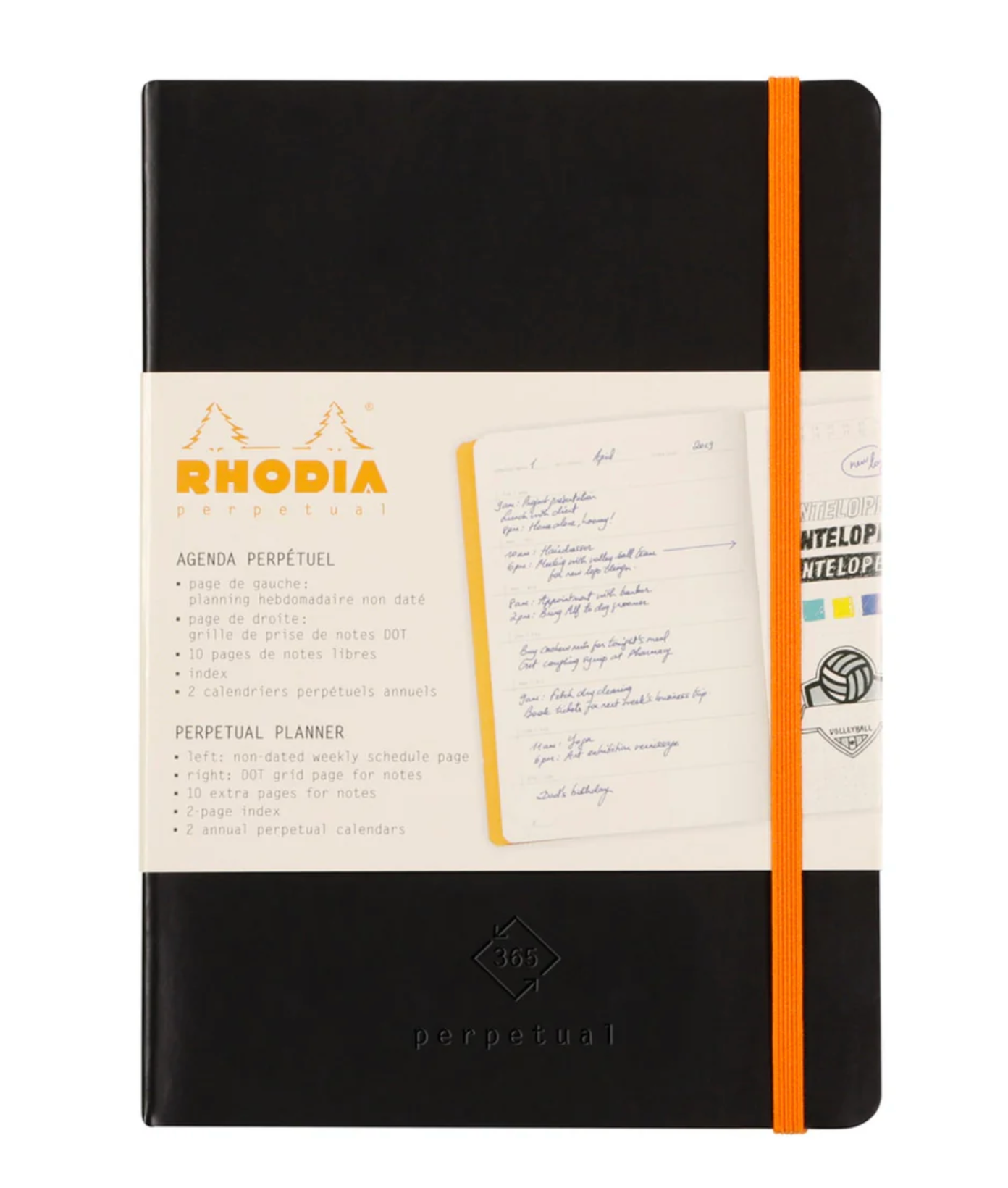 Rhodiarama Perpetual Agenda 5.75X8.25 - Black
