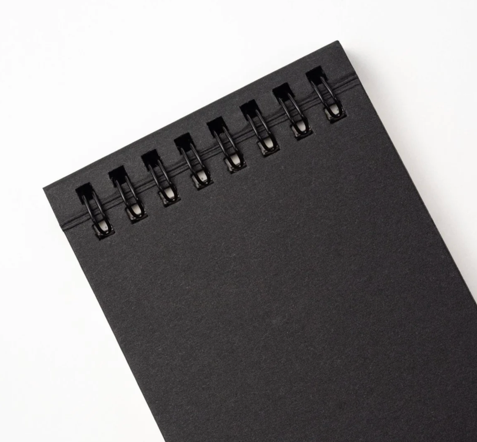 Each Reporter Pad features a black card-stock cover that wraps over the wire binding and is secured with a durable elastic band, giving the pad a clean look while protecting its contents. Each Reporter pad includes 80 sheets of 80GSM paper available