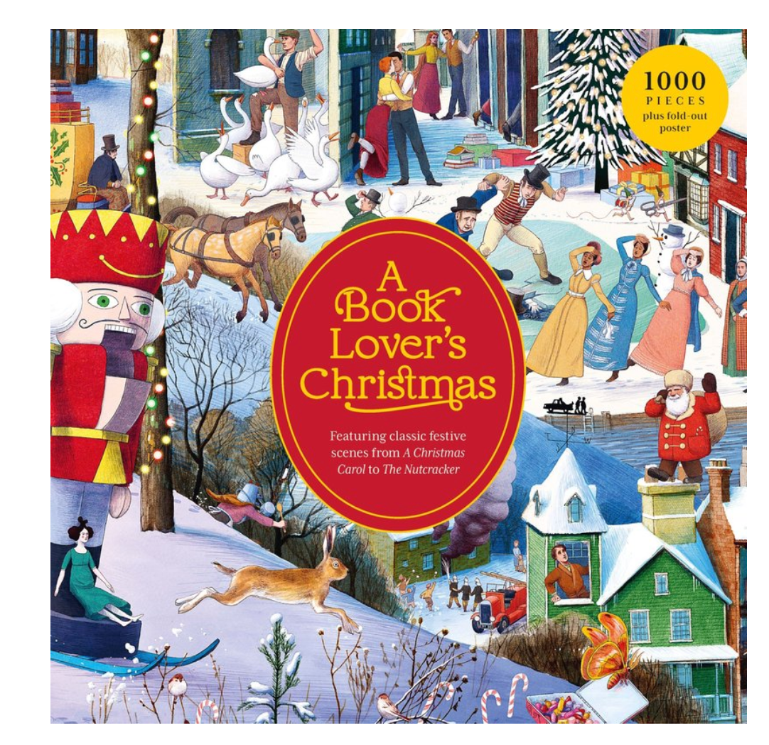 1000-PIECE PUZZLE : this detailed illustration of Christmas scenes from literature is packed with real people and fictional characters to seek and find.