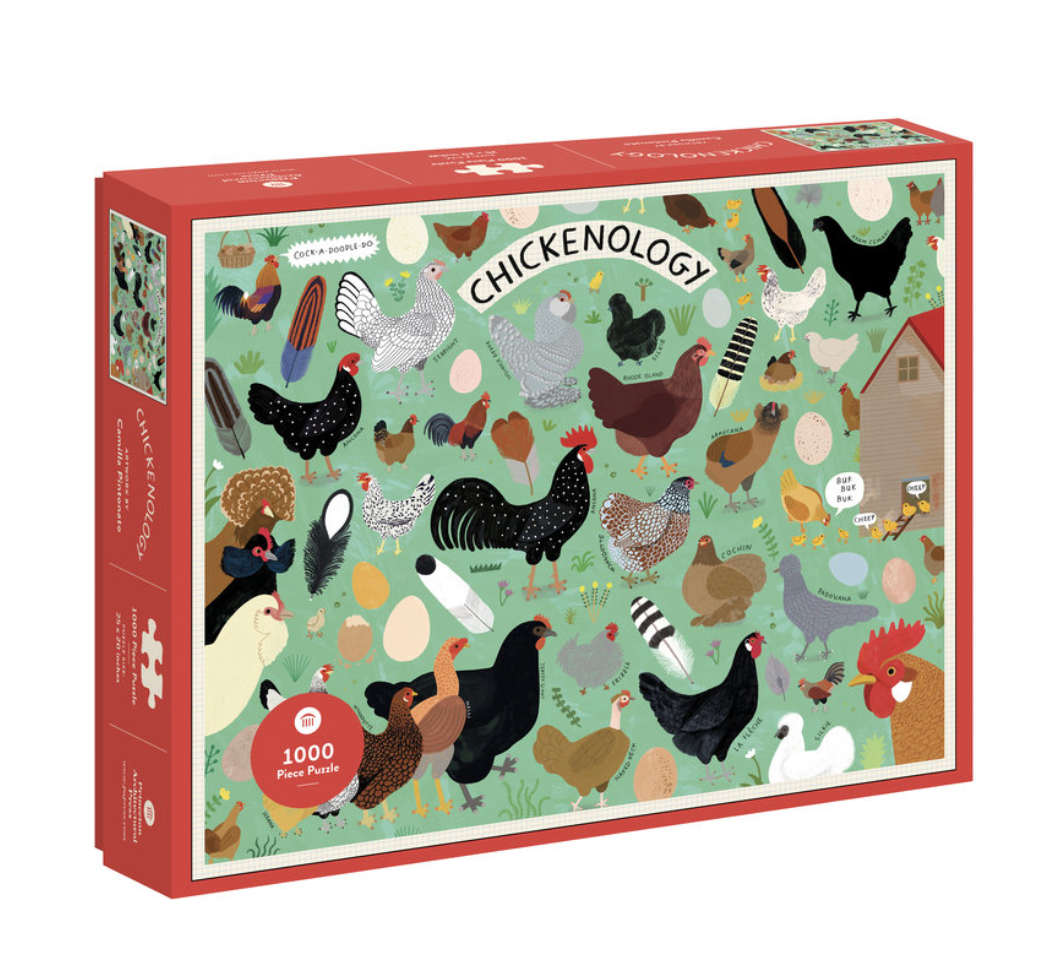 This high-quality puzzle contains minimal puzzle dust for neater assembly and is accompanied by an oversize insert with the reference image and an artist statement by rising star Camilla Pintonato. Next time you're feeling cooped up" on a rainy day, this Chickenology puzzle is sure to entertain!"